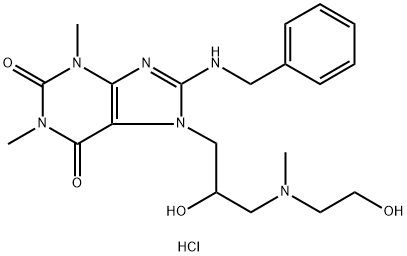 1H-Purine-2,6-dione, 3,7-dihydro-1,3-dimethyl-7-(2-hydroxy-3-((2-hydro xyethyl)methylamino)propyl)-8-((phenylmethyl)amino)-, monohydrochlorid e